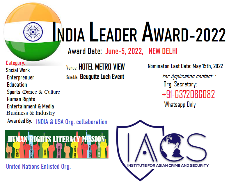 • India Leader Award-202211th May 2022